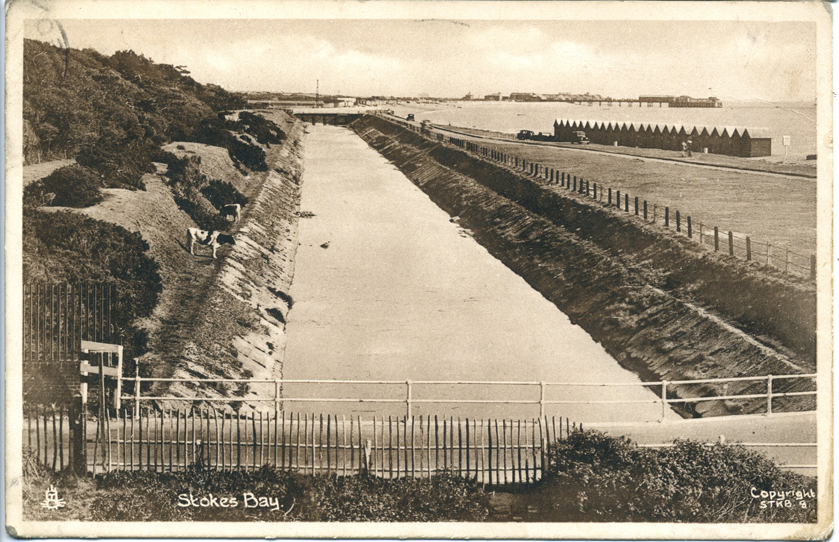 The Stokes Bay Lines, constructed to protect Gosport from a beach landing at Stokes Bay, consisted of a ditch that ran from the Browndown Batteries in the west to Fort Monckton in the east. The River Alver was diverted into the moat to ensure that there was always sufficient water and in 1950, the ditch was filled because of complaints from residents of mosquitoes and stagnant water.